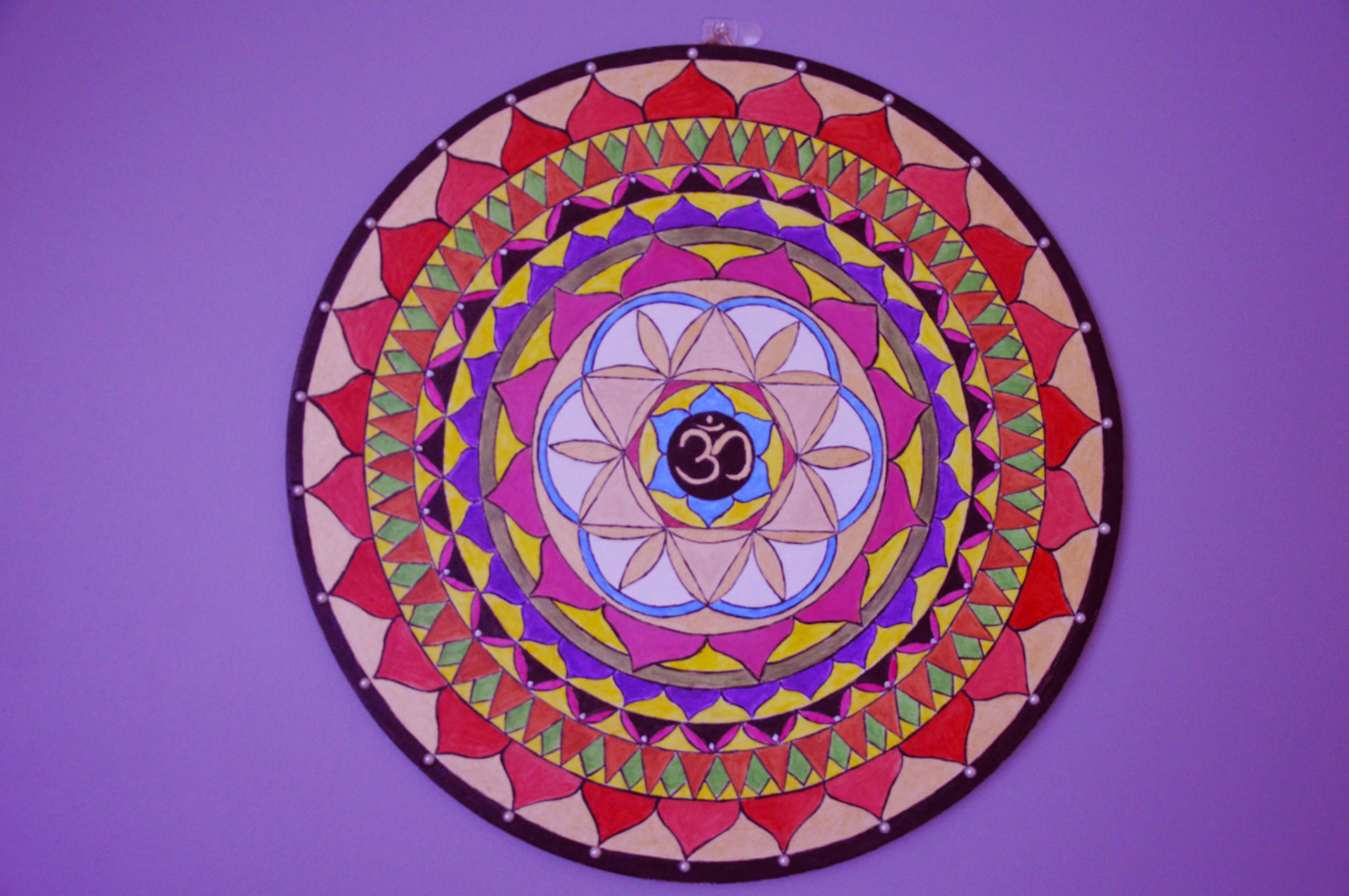 Mandala malowana akrylami na panelu Canvas 100% bawełna. 40 cm